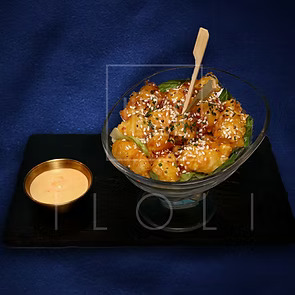 Fried shrimp marinated with hot sauce sriracha , sweet chilli sauce and kewpie mayonnaise.